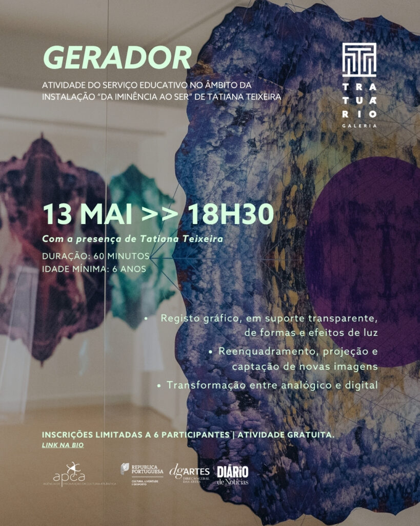 No próximo dia 6 de setembro (sexta-feira), pelas 17 horas, Pedro Alves da Veiga estará na Galeria Tratuário para a conferência “SER-GENERATIVO”, onde serão discutidas todas as obras expostas, sob perspetivas técnicas, estéticas e funcionais, destacando a evolução de muitas peças ao longo da exposição. Sob a moderação de Hernando Urrutia, a conferência contará também com a presença de Maurício Marques, Presidente do Conselho de Administração da APCA – Agência de Promoção da Cultura Atlântica.